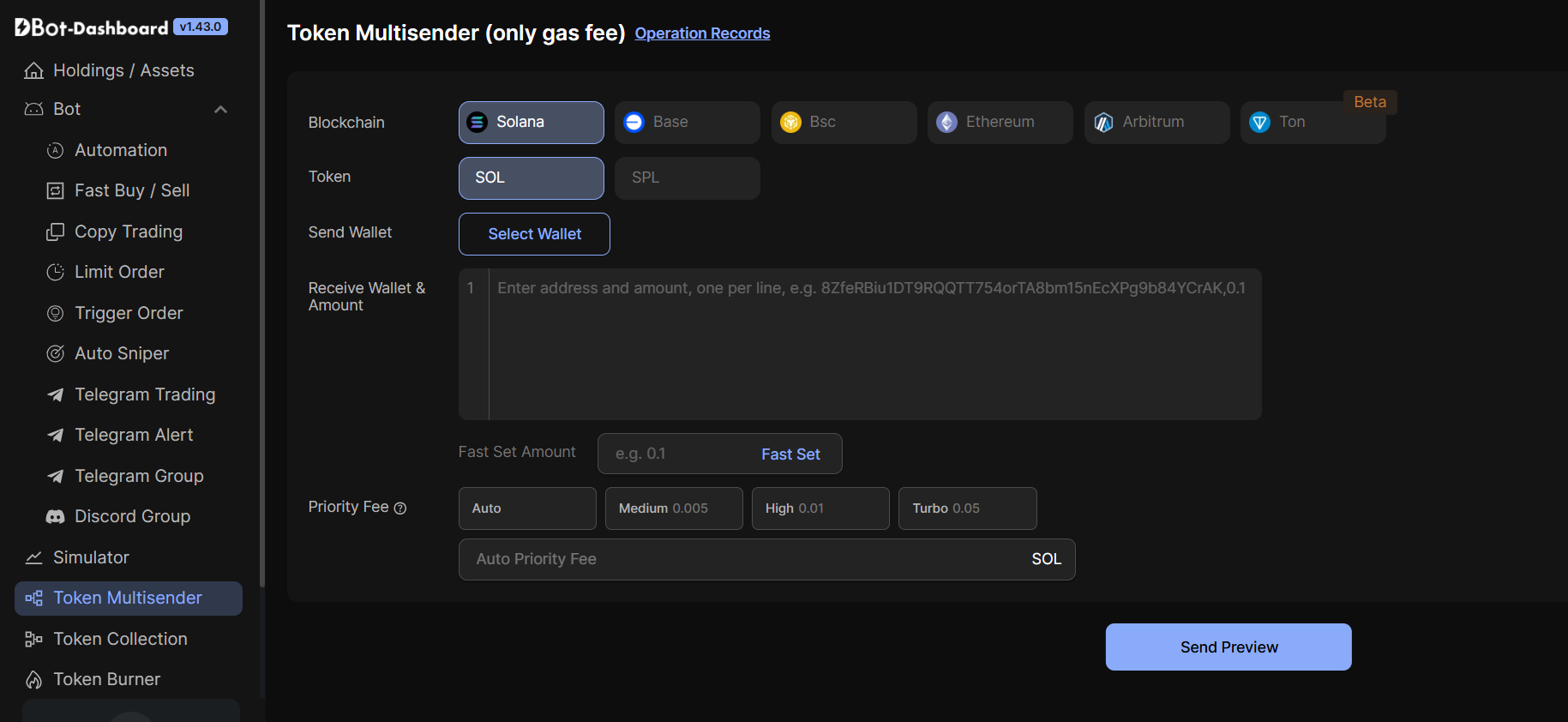 * DBot multi-chain Token Multisender, supporting Solana / Base / Ethereum / Arbitrum / Bsc