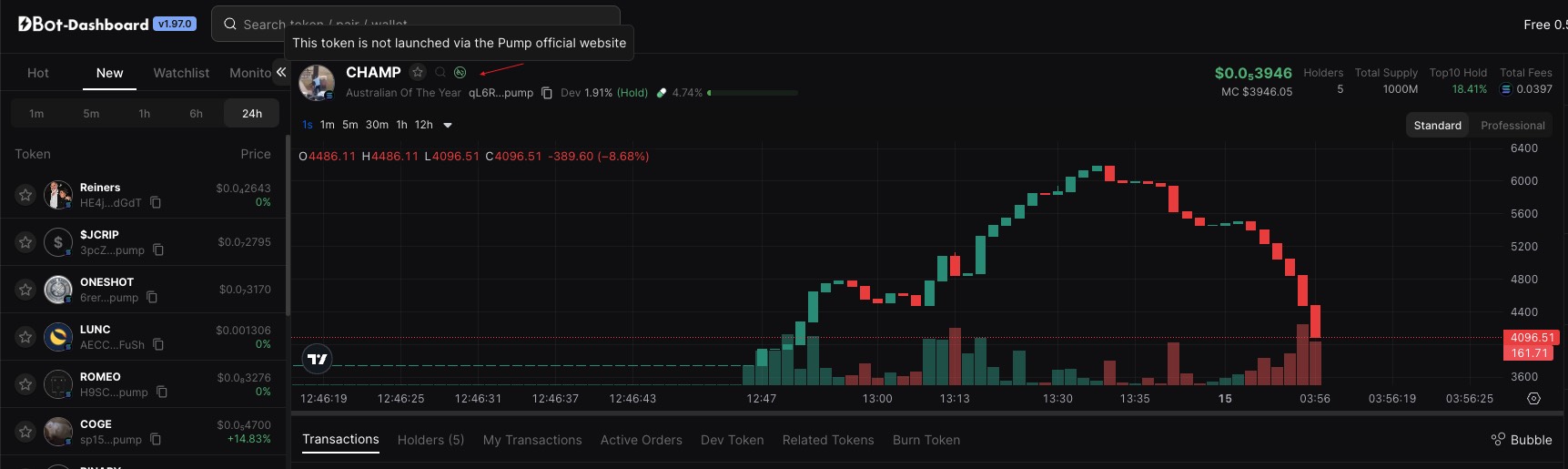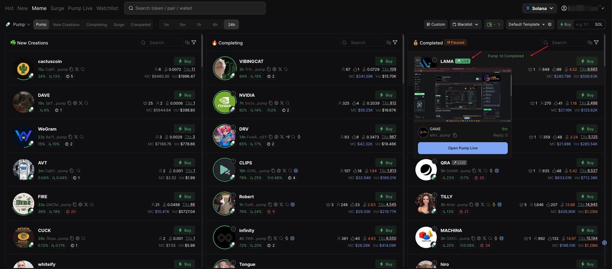 * **Pump Live:** Click to switch to real-time Pump Live Tokens