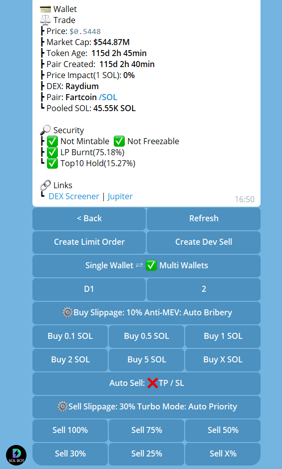 * DBot Telegram Bot supports Auto Sell: TP/SL, Raydium Sell, Dev Sell